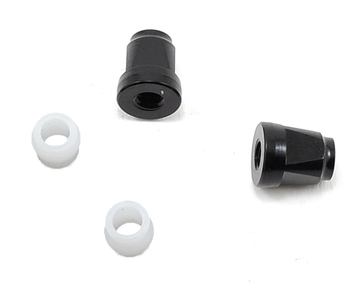 This is an optional Avid RC +.030 Standard Shock Standoff Set, and is intended for use with Team Associated 1/10 scale vehicles. The Avid Standard +.030 Standoff for Associated vehicles is only for racers upgrading older model cars from V2 shocks to larger 12mm big-bore shocks. It is commonly used on the front of a B4.1*, T4.1, and SC10 for those running 12mm shocks. *minor trimming required to clear spring adjustment collar. Avid has designed strong standoffs with replaceable Delrin pivot bushings to coincide with the release of the 12mm Team Associated big-bore shocks. The standard +.030 aluminum shock standoffs are made of black anodized 7075 Aluminum and have a wide base to prevent bent shock mount screws from de-railing your bid for the TQ. The Delrin pivot bushings can be replaced to help keep a tight fit and not wear out your aluminum shock caps.