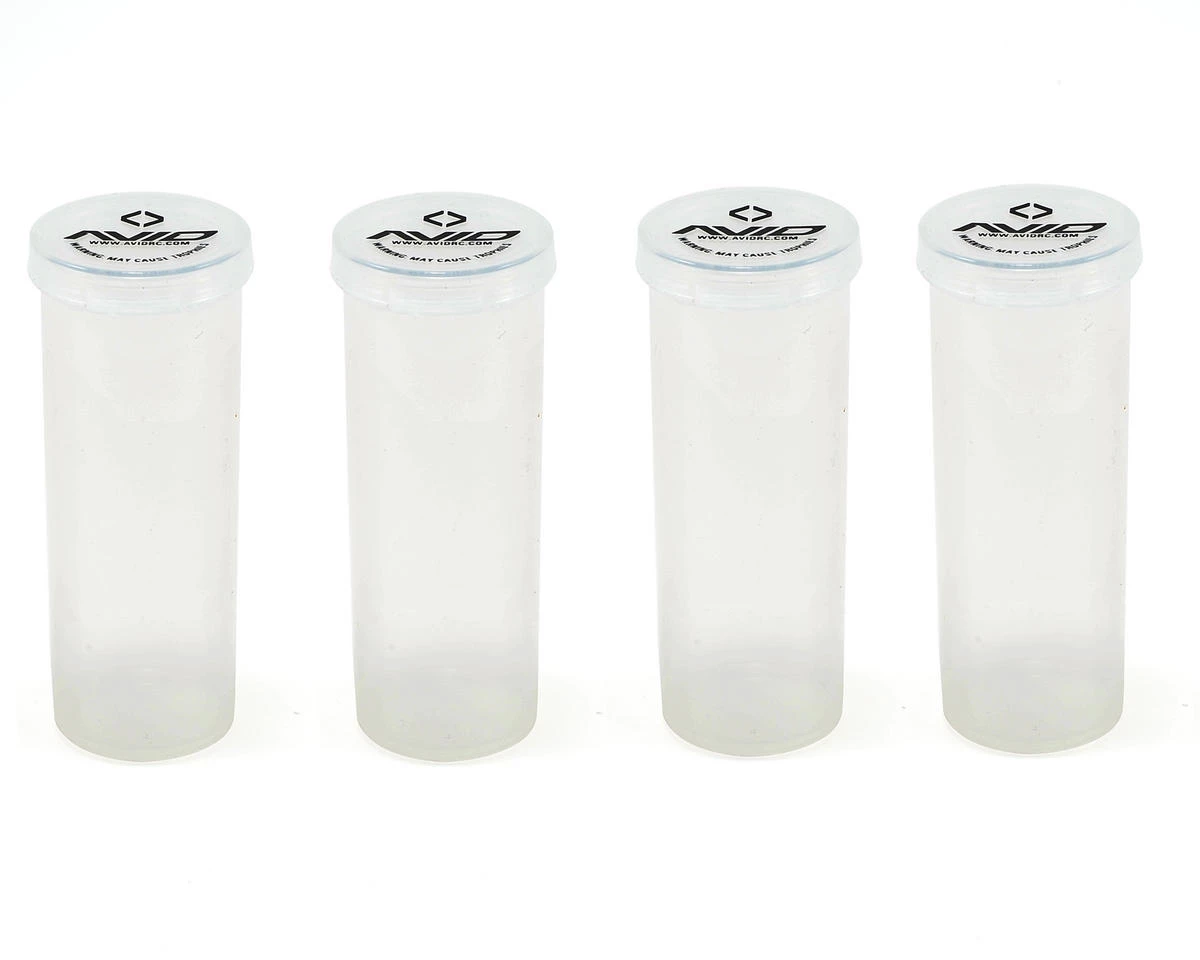 This is a pack of four Avid RC 1/10 Scale Spring Tubes. This 10th scale spring tube pack includes 4 clear plastic branded vials like those that already come in the Avid spring sets. Now you can get all your springs organized and kept safe so that wad of springs you have in the corner of your pit box can finally find a home.