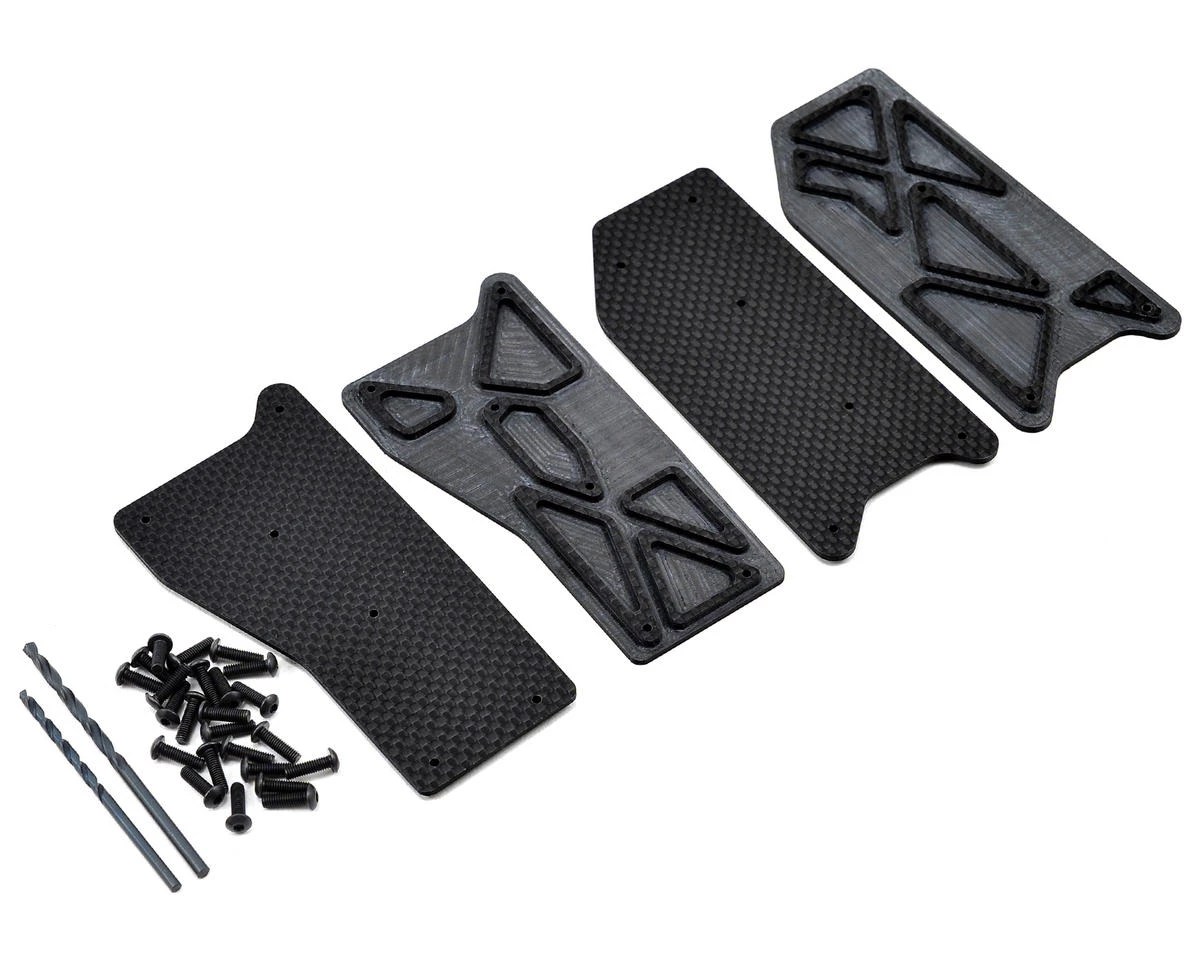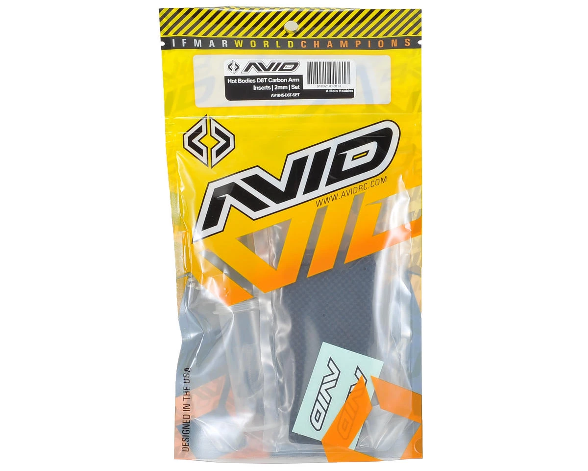 This is an optional Avid RC 2.0mm Carbon Arm Insert Set, intended for use with the Hot Bodies D8T 1/8 Scale Truggy. These Hot Bodies D8T Carbon Arm Inserts were developed and used by Ty Tessmann to win the 2014 Dirt Nitro Challenge which offer the D8T truggy another great tuning feature by reducing arm flex and twist, making the truck more responsive. A common setting is to run the inserts just in the front, or just the rear, to dial in the feel of your truck.