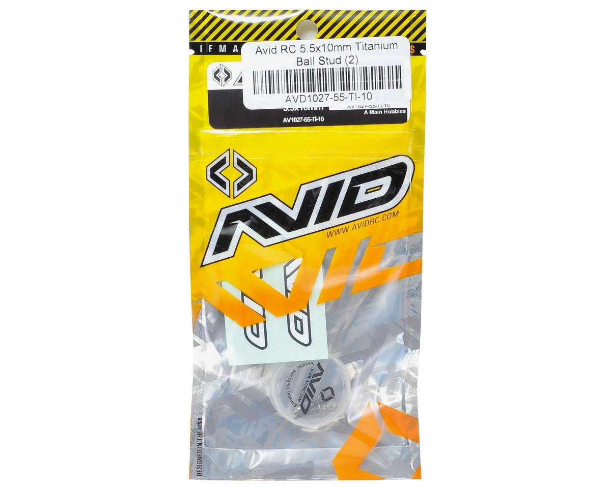 - Each package includes (2) 5.5x10mm Titanium Ball Studs, and 1 AVID mini decal sheet.