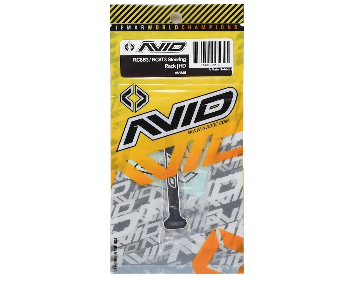 This optional Avid RC RC8B3 / RC8T3 HD Steering Rack is made to prevent the easy bending of the stock steering rack by making it out of the strong 7075-T6 aluminum, removing the relief pockets, and taking out the unnecessary kinks.