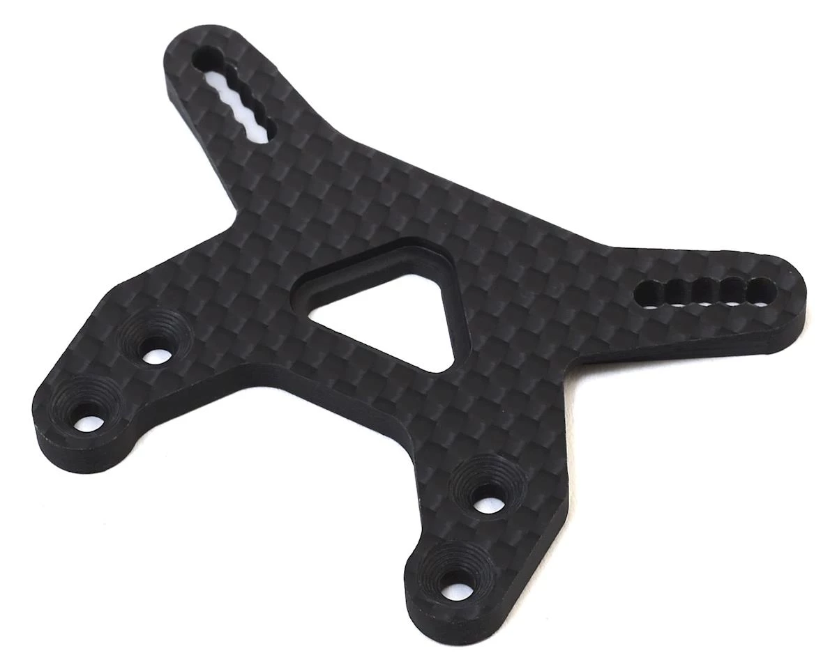 The Avid B6.1 Carbon “Gullwing” Front Shock Tower is made from 100% carbon fiber and designed for strength. Avid call this tower custom because they removed the inner kit hole since it was never used, added in-between holes for finer adjustments, and you may now go a half hole out further on the tower than the kit tower. Check the hole locations file in the resources tab above.