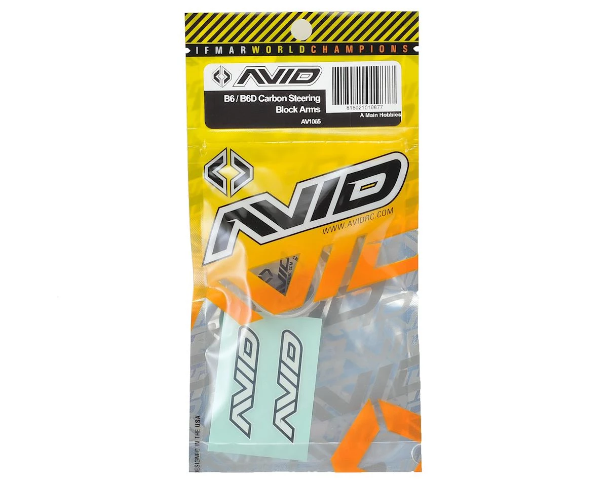 Avid B6/B6D Carbon Fiber Steering Block Arms are made from 2.5mm thick 100% carbon fiber plate and maintain the stock kit Ackermann geometry. Plus, they are 1 gram lighter than the stock parts.