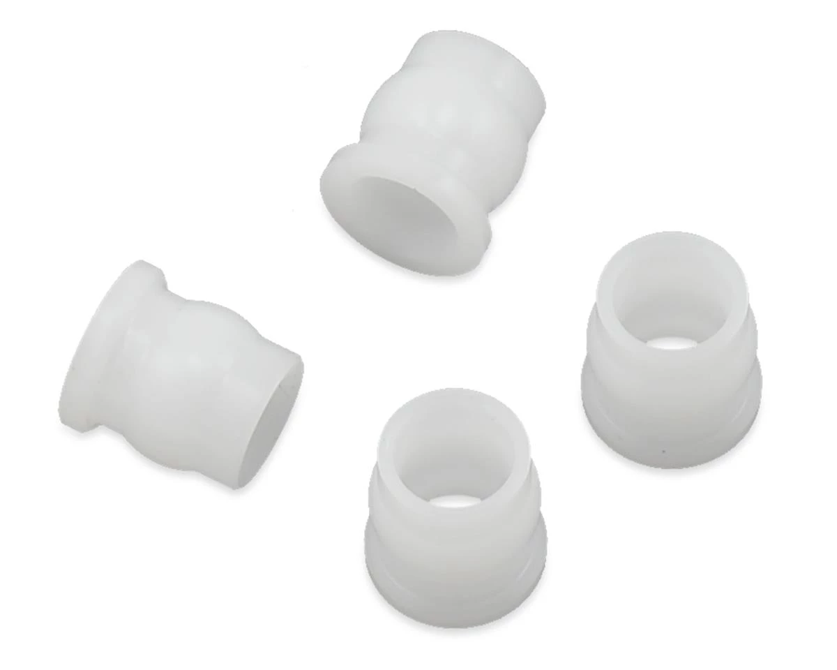 Avid Delrin pivot bushings come in a pack of 4 as replacements for our B6 / B6D Shock Standoffs. These bushings rest on the smooth surface of the standoff instead of on the threads of the screw which allows them to last longer. However, over time the bushing can still wear and it is beneficial to replace them for a tight fit into your shock cap.