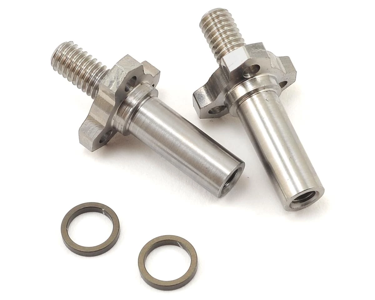 Avid B6/B6D Triad Titanium Front Axles were designed to increase strength over the kit aluminum axles while also allowing you to narrow your track width with the included 1mm shims.