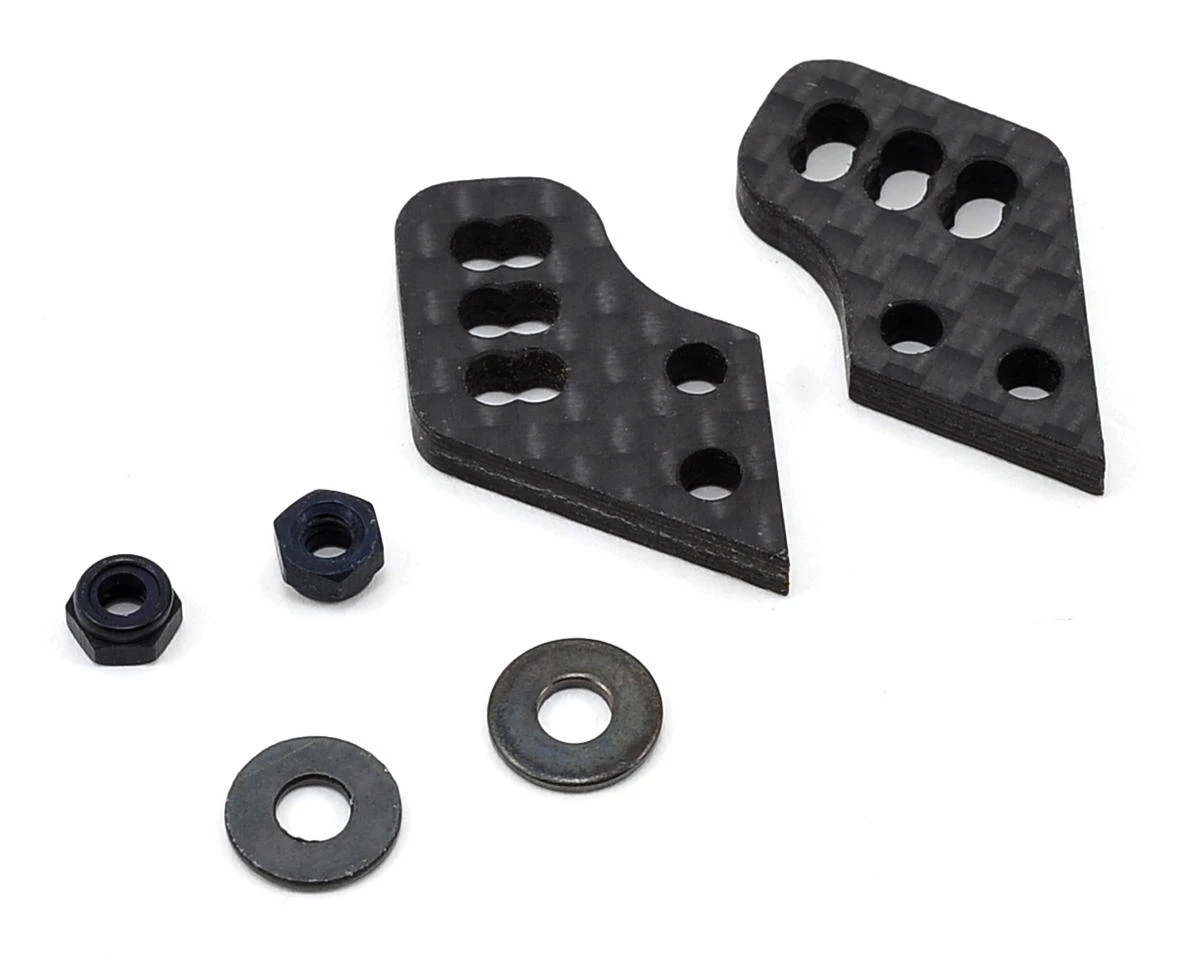 This is an optional Avid RC Carbon Fiber Rear Hub Tower, and is intended for use with the Team Associated B4, B4.1, T4, T4.1 and SC10 1/10 scale vehicles. These hub towers are a great upgrade for any Team Associated vehicle running the blue aluminum rear hubs featuring lightweight 3mm Carbon Fiber and additional camber locations.