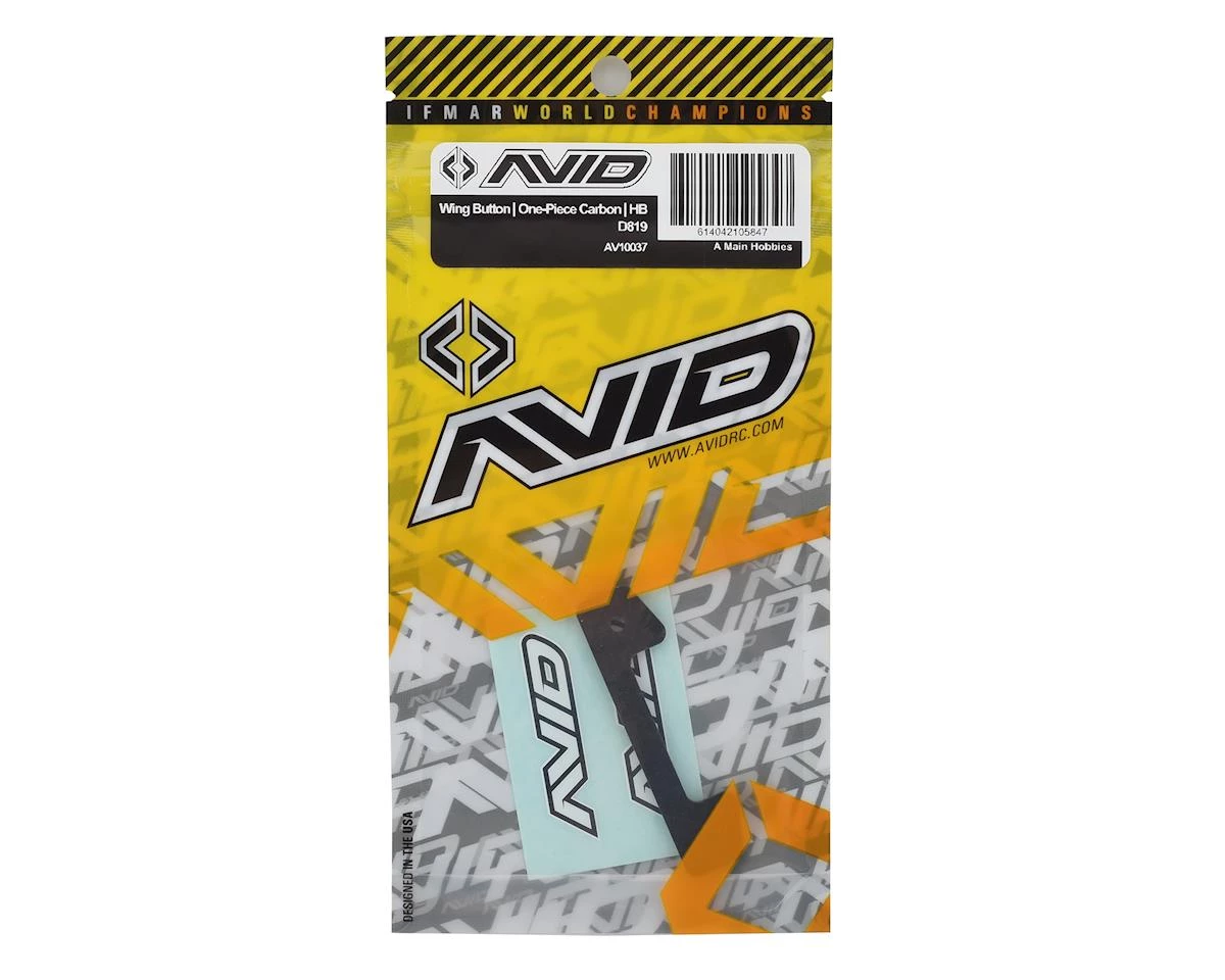 The optional Avid RC HB D819 Carbon Fiber One Piece Wing Mount Button is a lightweight alternative to the commonly used wing buttons and also functions as a template for marking holes in new wings.