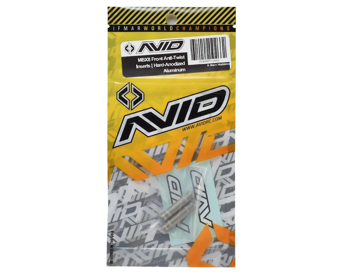 - Each package includes 2 Hard-Anodized Aluminum Front Anti-Twist Insert and 1 AVID mini decal sheet.