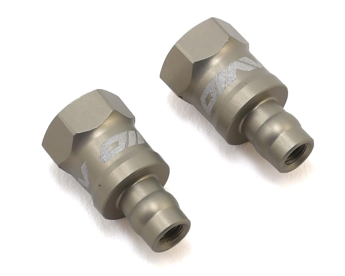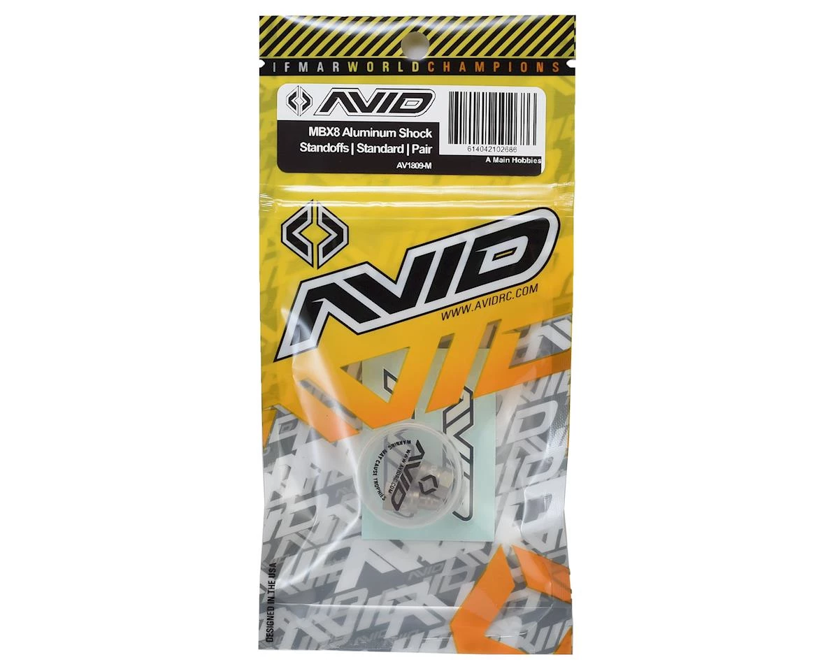 Avid Mugen MBX8 Aluminum Standard Shock Standoffs are made from 7075-T6 aluminum and Hard Anodized for durability. The kit includes two standard length standoffs which are a direct replacement for the kit standoffs and maintain the stock shock angles.