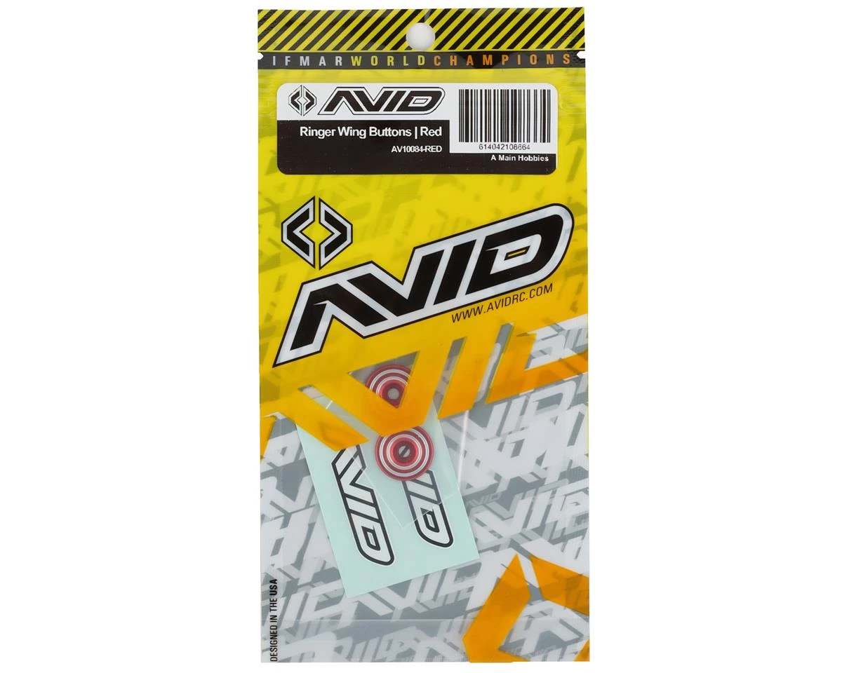 Avid RC Ringer Aluminum Wing Buttons. These optional wing buttons are designed to securely hold your 1/8th or 1/10 scale wing in place. Add bling to your ride without sacrificing durability. Available in multiple anodized finishes to best match your build. Package includes two wing buttons.