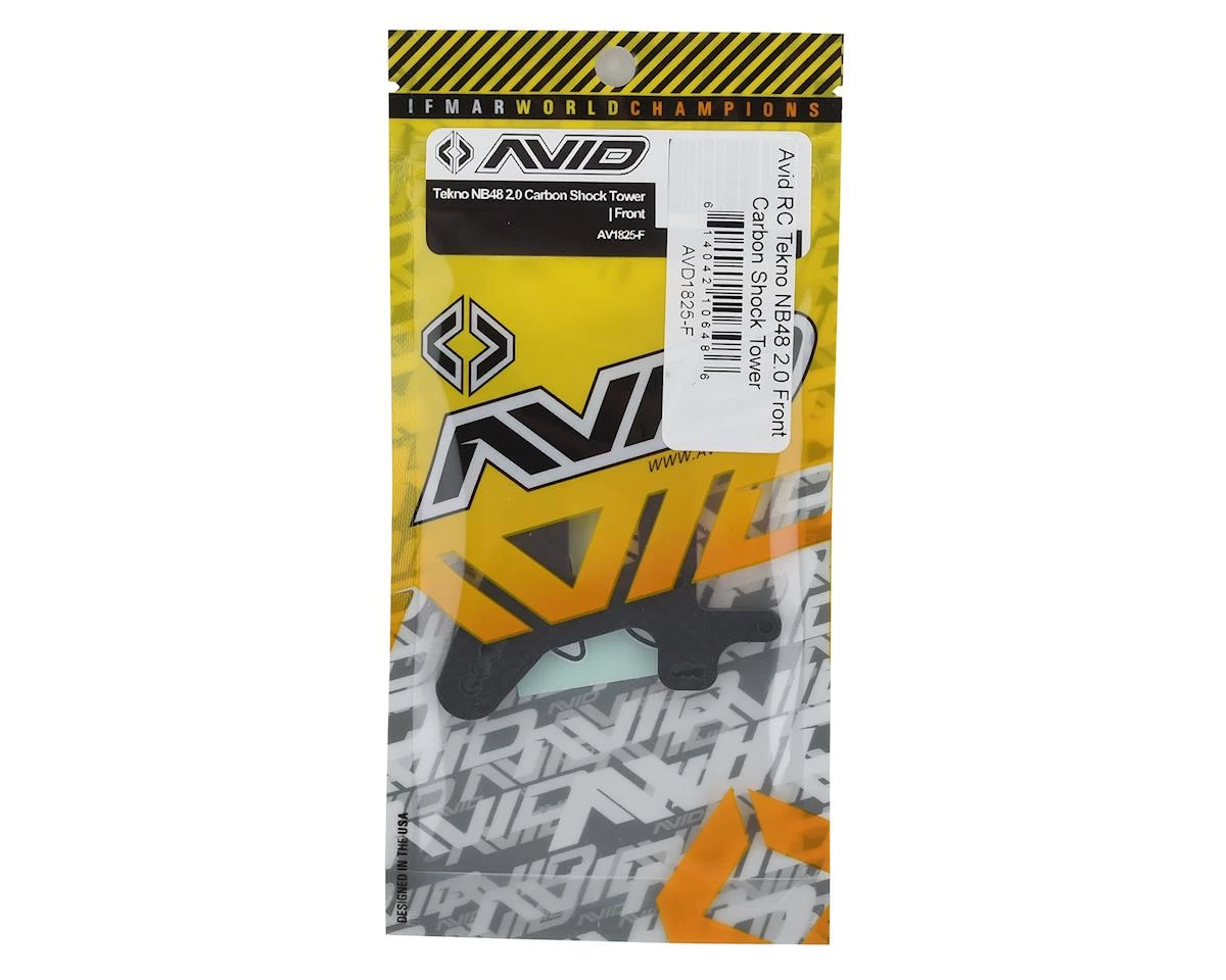 This is an optional Avid RC Tekno NB48 2.0 Front Carbon Shock Tower, intended for use with the Tekno NB48 2.0 kits. Tekno NB48 2.0 5mm Carbon Shock Tower is made from 100% carbon fiber, matte finish and 2.5d cutouts for a nice look, and lightly chamfered on the front side to help avoid splitting or chipping on hard wrecks.