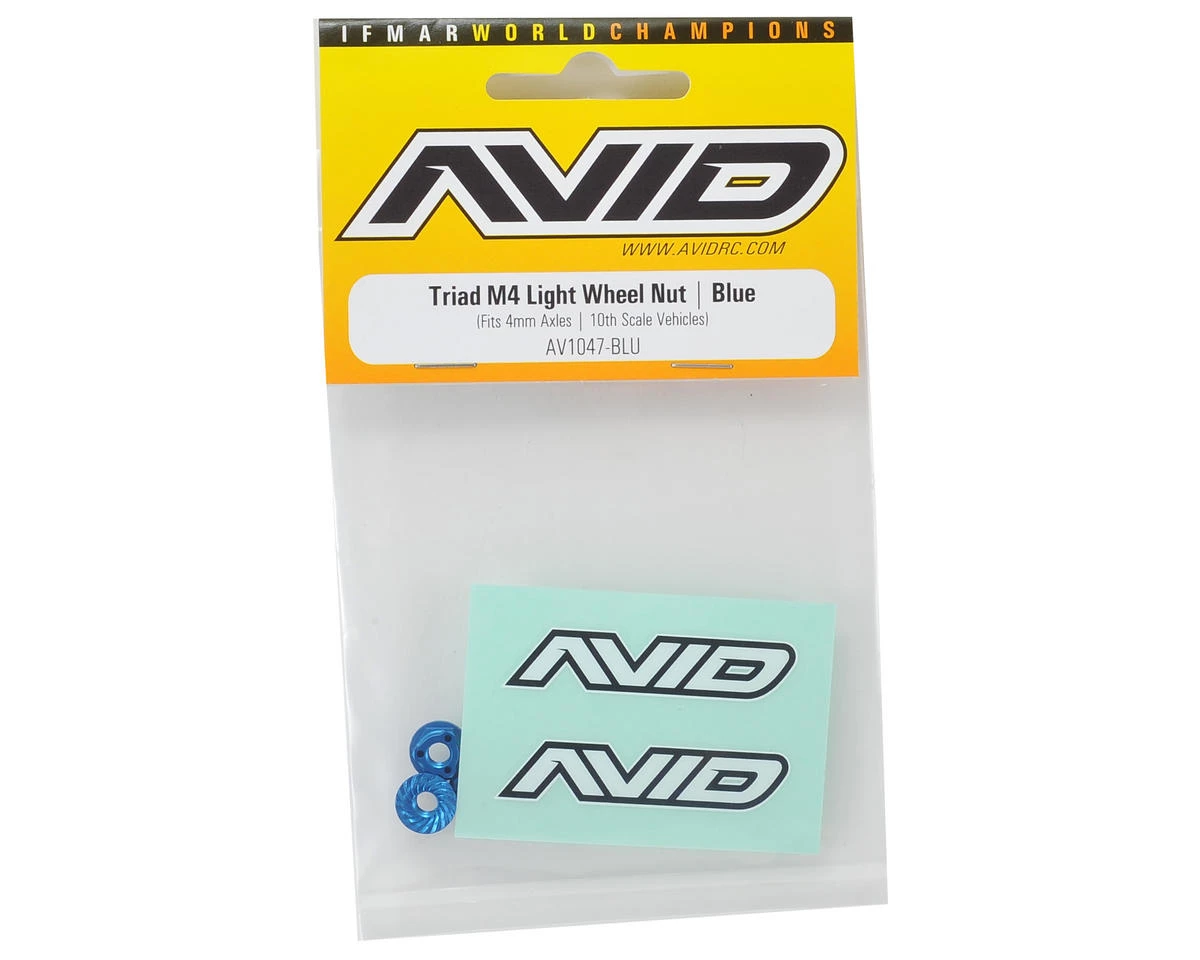 - Each package includes 4 blue wheel nuts and 1 AVID mini decal sheet.