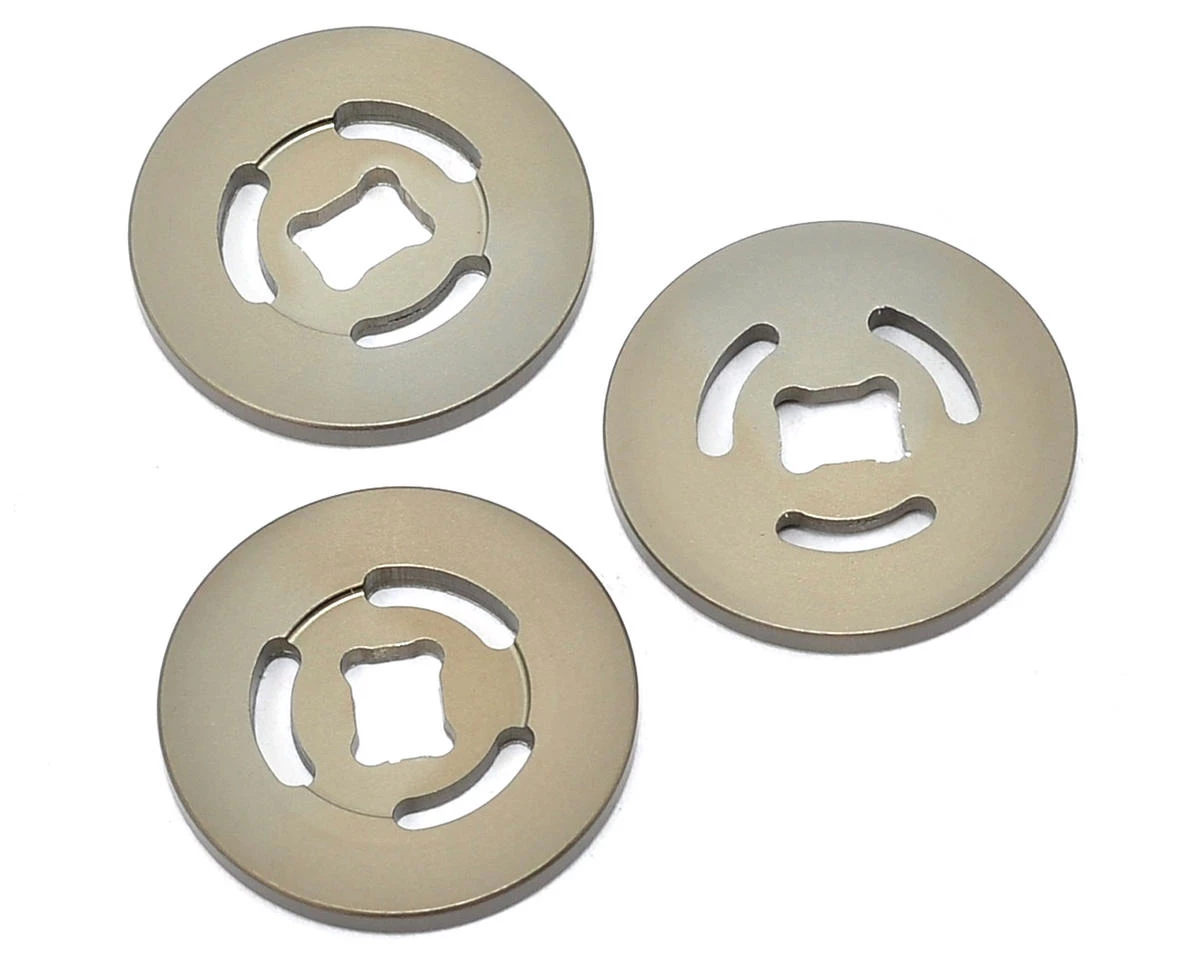 This is an Avid Triad Evo Drive Plate Set. The Triad Evo Slipper Clutch utilizes an updated plate design that is self centering so you no longer have to use those 3 annoying black washers that you are always dropping on the floor. Avid also added 3 vent slots in order to remove some rotating mass and to help with cooling the plate during operation. Additionally, these plates can be used to upgrade your Triad Slipper Clutch to the Triad Evo specifications.