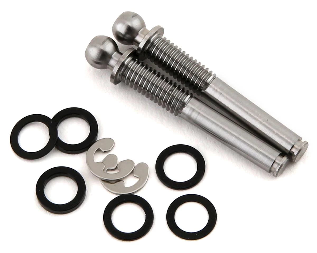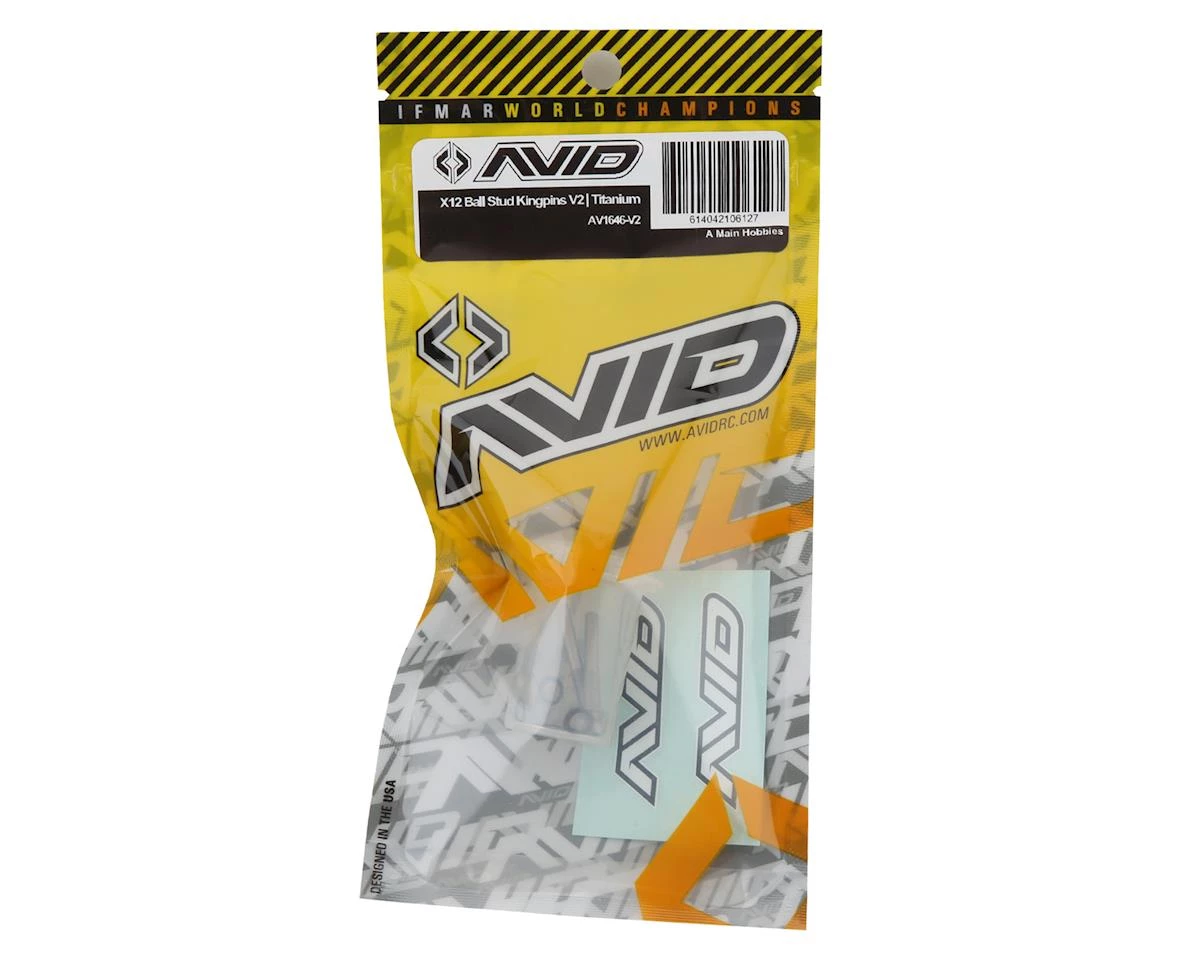 This is a set of two Avid RC XRAY X12 V2 Titanium Ballstud Kingpins, intended for use with the X12 1920 and 2020 US Spec 1/12 Pan Car Kits. These X12 Ballstud Kingpins V2 have been changed from M4 thread to a M3.5 thread while also including all the roll center shims. This allows for a much easier install with no drilling and tapping required. They are made out of titanium and allow for a updated style front end setup on your Xray 12th scale.