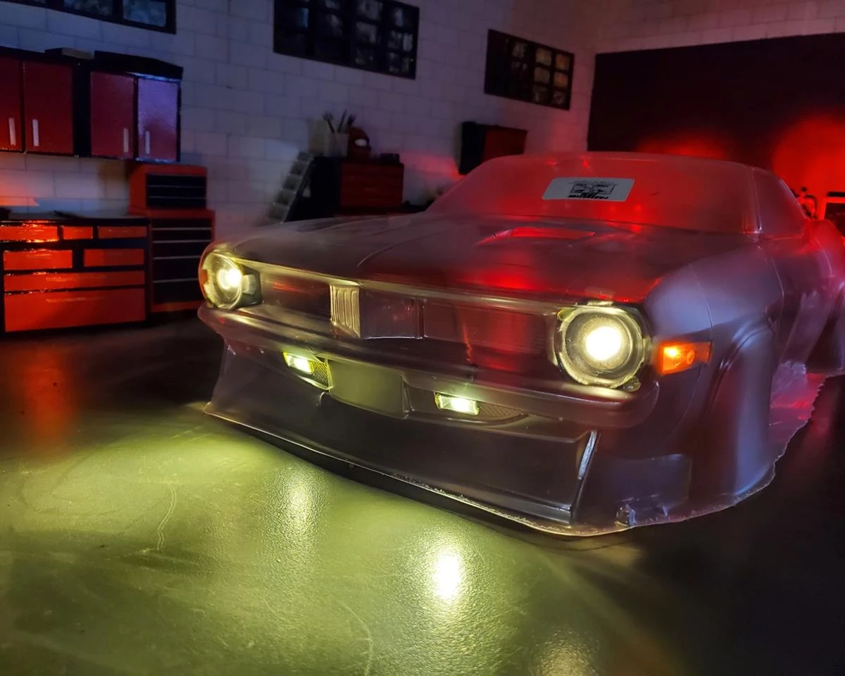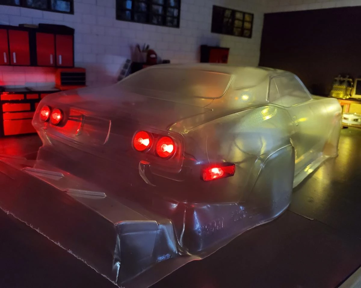 - Custom light kit option for the Pro-Line 1972 Plymouth Barracuda Drag Car Body (PRO3550-00)