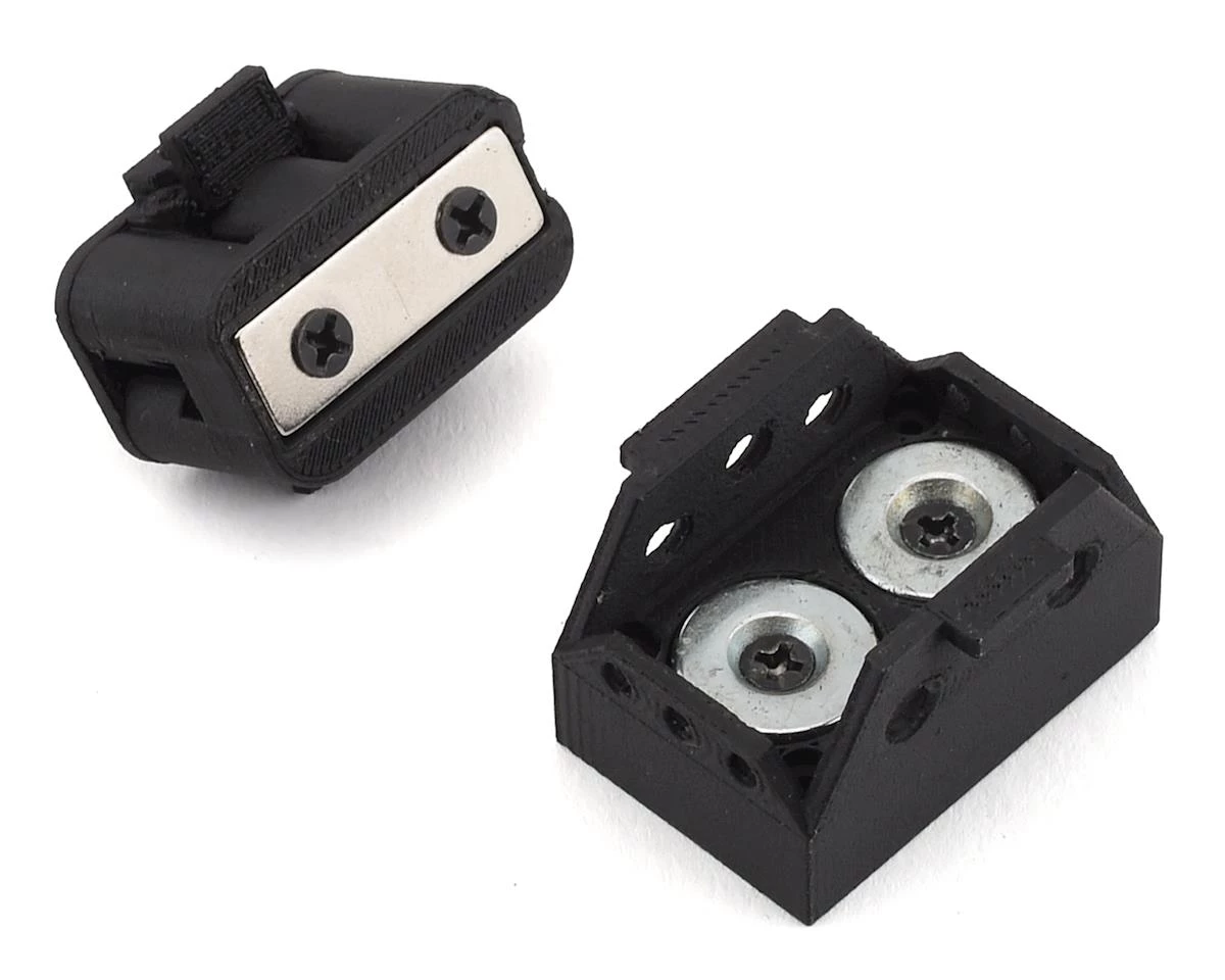 The Powershift Battery DMS Unit is a unique component that offers the functionality of a power switch, combined with the added details of a scale accessory that allows you to power up or power off your rig without removing the body! The Made in the USA system consists of two primary pieces – the base that the included power leads connect to, and an upper half that completes the circuit when attached. Rare earth magnets in the base and upper half join the two halves together securely, and prevent the unit from being pulled apart unexpectedly.
