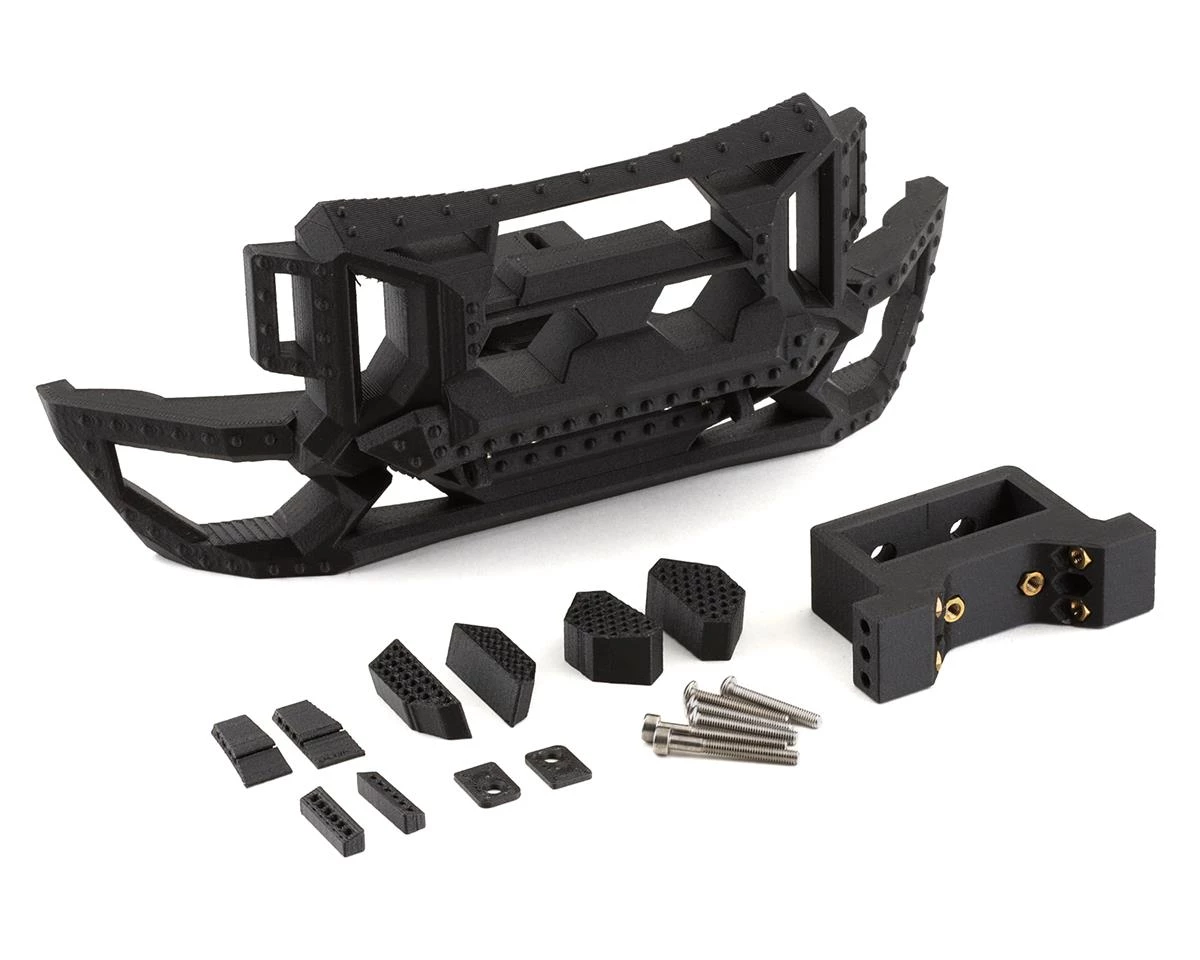 Powershift RC Technologies CEN F450 Fab Four Style Front Bumper and Grille Combo. This optional front bumper and grille set is intended for the CEN F450 truck. Using this will add an extreme scale presence to your ride. Made from a durable 3D printed material, this bumper set includes grille insert pieces to be added in. Package includes one front bumper and grille set.
