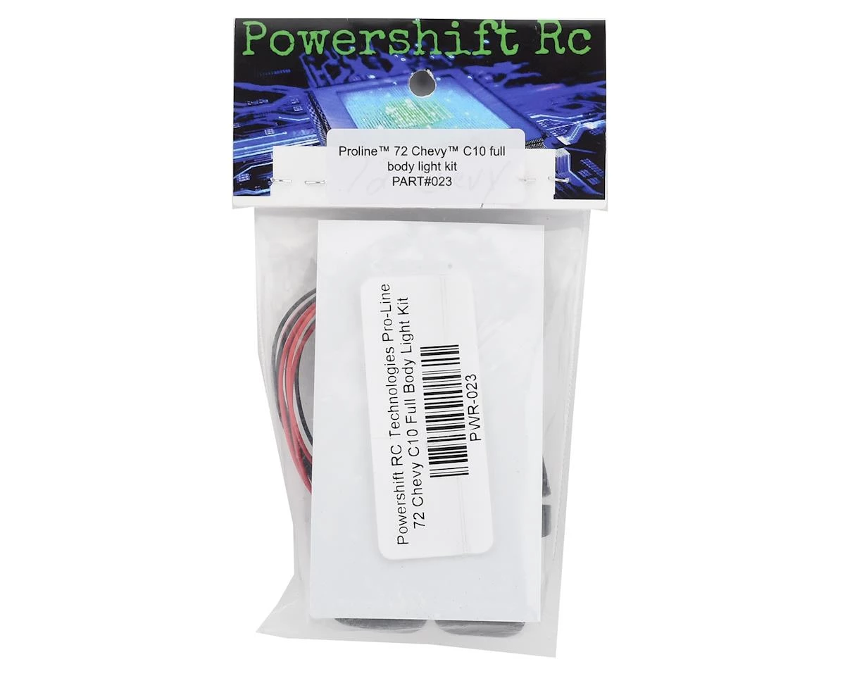The Powershift Pro-Line 72 Chevy C10 Light Set gives you the lights you need to elevate your C10 above the rest. This light kit includes headlights and tail lights with open ended wires that are pre-tinned and ready for your connectors. The kit features carbon nylon printed light buckets that are easy to install using your preferred rubberized adhesive, and will give your C10 an improved scale look, with powerful lights that will pierce the dark.