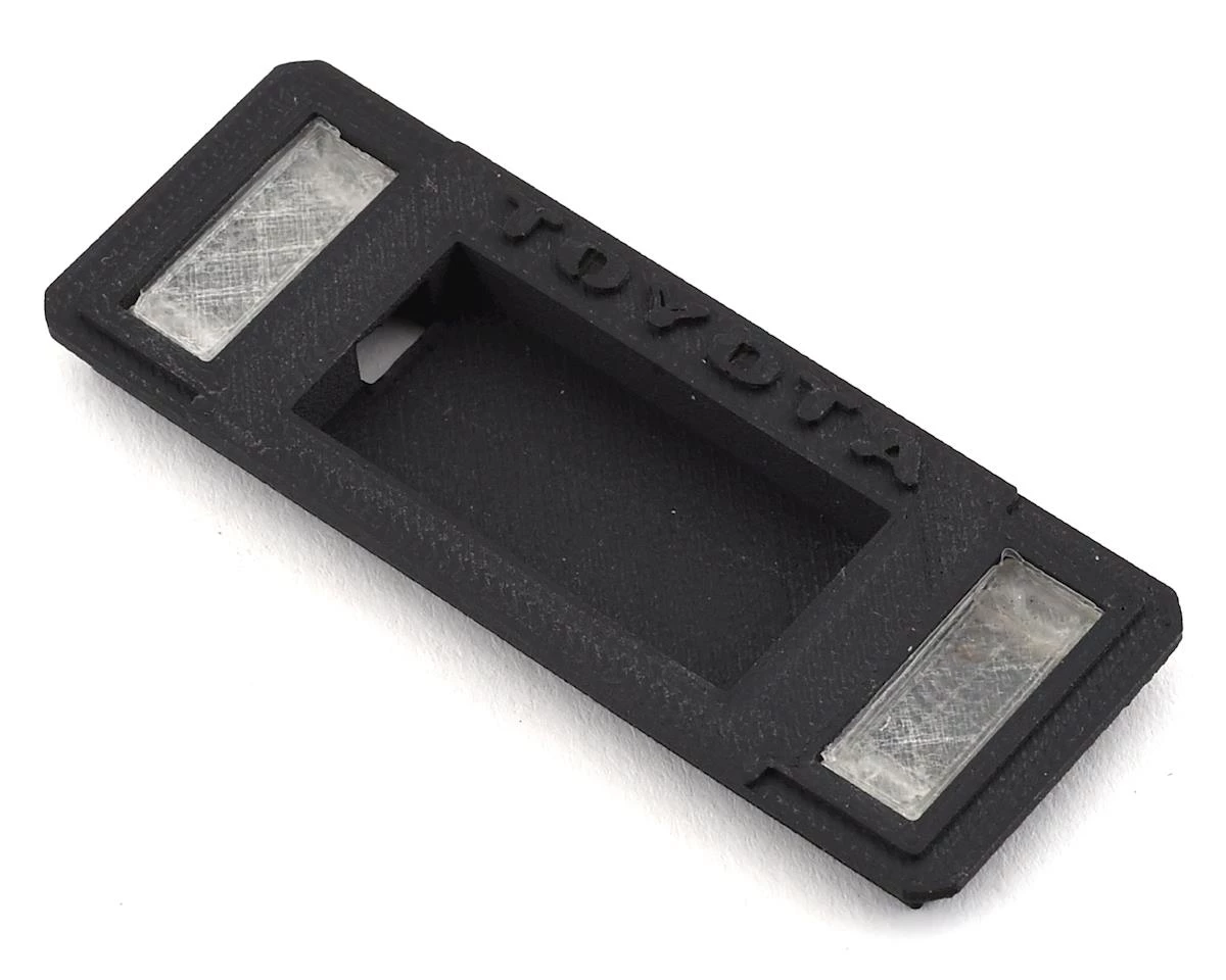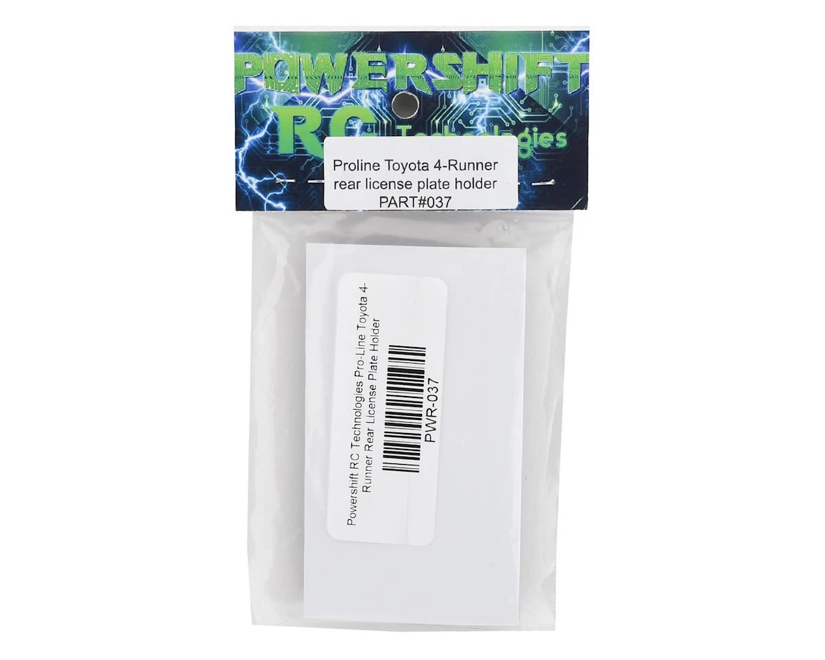 The Powershift Pro-Line Toyota 4-Runner Rear License Plate Holder is a 3D printed carbon nylon builders part that makes it easy to mount a license plate on your Pro-Line 4-Runner. The housing has translucent lenses pre-installed, with mounting holes that will allow you to install 3mm LEDs behind the lenses, with pockets on each side of the license plate cavity that are perfect for a marker light to illuminate your license plate. You will need to cut a hole in the body for installation, and the unit is secured to the body using a rubberized adhesive like shoe goo or E-6000.